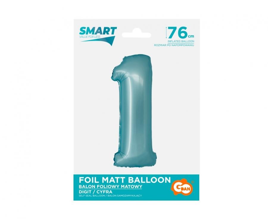 Фолиев балон цифра 1 в цвят светло син - има размер 30''/76см., в надуто състояние.