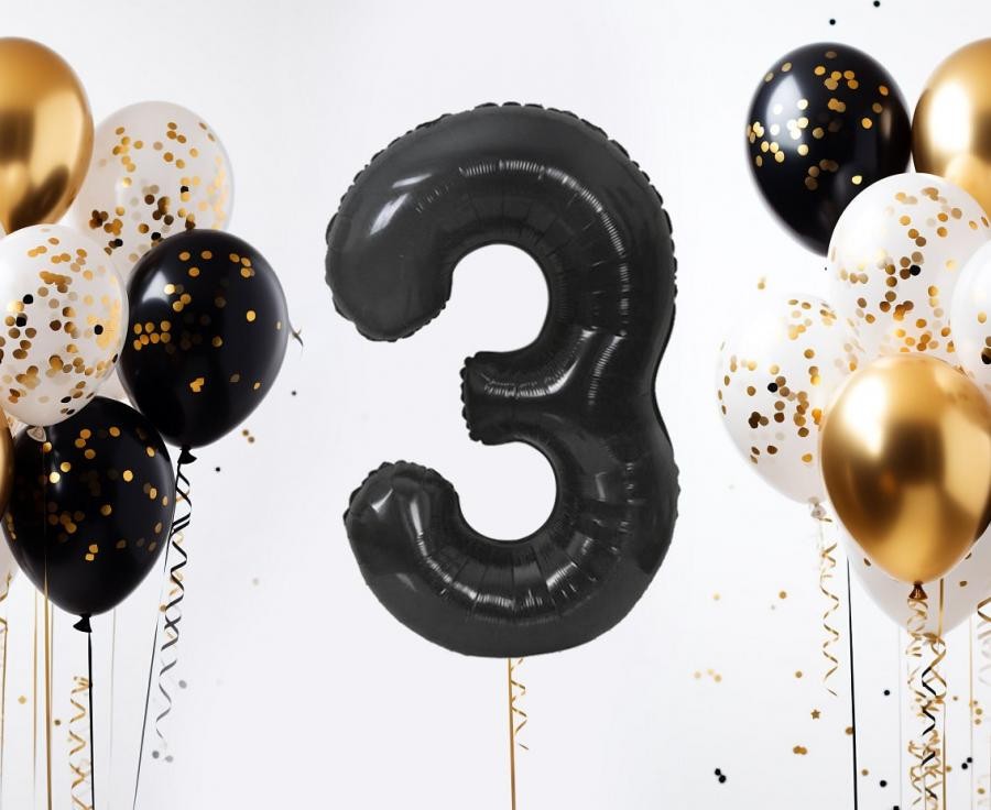 Фолиев балон цифра 3 в цвят черен - има размер 34''/85см., в надуто състояние.