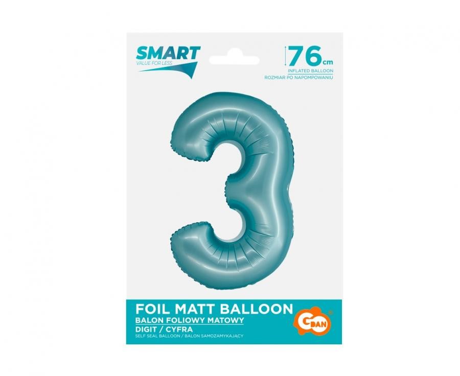 Фолиев балон цифра 3 в цвят светло син - има размер 30''/76см., в надуто състояние.