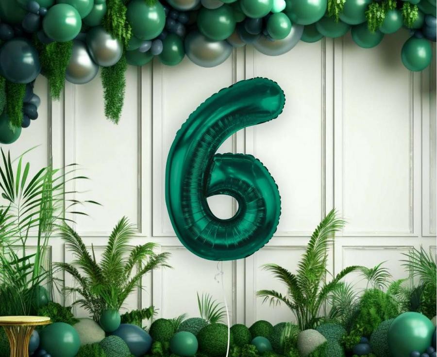 Фолиев балон цифра 6 в цвят зелен - има размер 34''/85см., в надуто състояние.