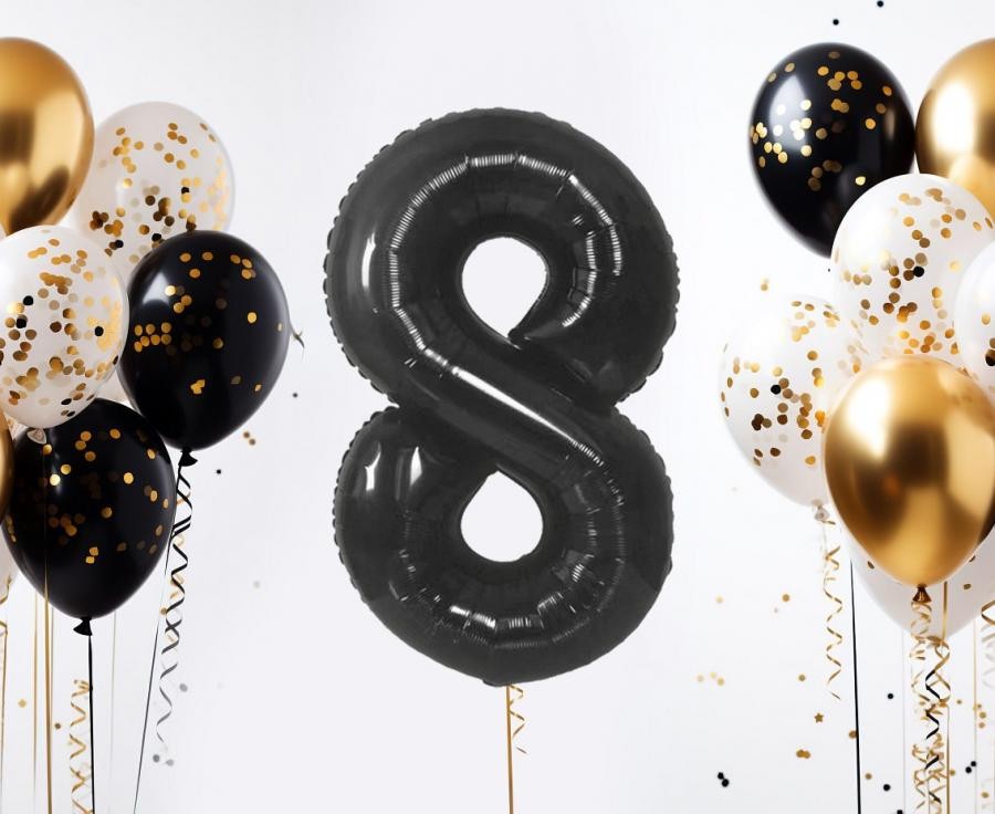 Фолиев балон цифра 8 в цвят черен - има размер 34''/85см., в надуто състояние.