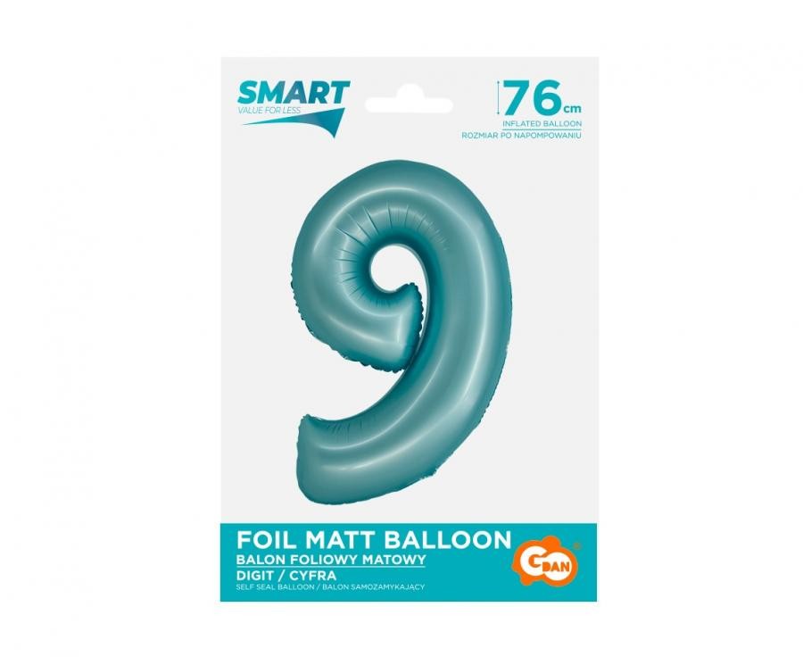 Фолиев балон цифра 9 в цвят светло син - има размер 30''/76см., в надуто състояние.