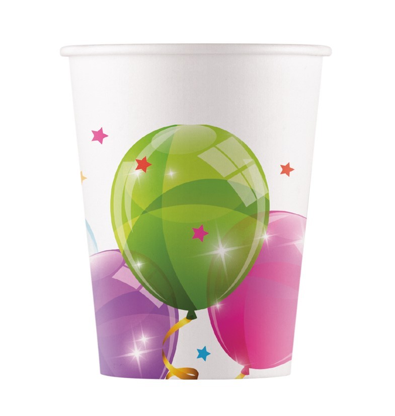 Парти чашки на шарени балони - зелено, червено, жълто, синьо, лилаво, оранжево.