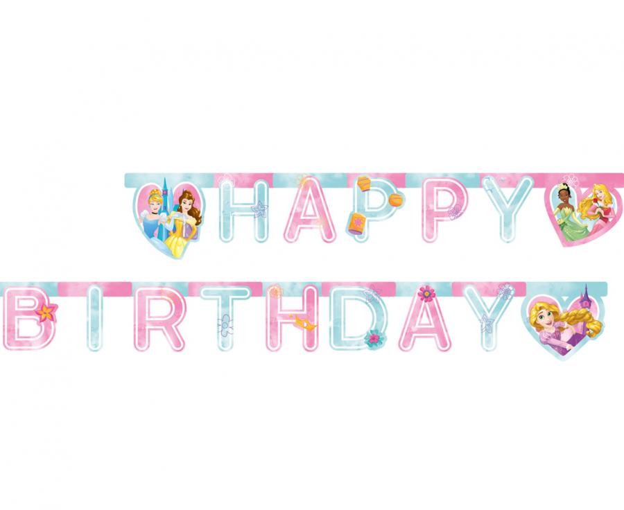 Парти банери честит рожден ден / happy birthday с героите - Принцеса Бел, Ариел, Рапунцел, Пепеляшка, Тиана и Снежанка от едноименните анимационни сериали на Дисни.