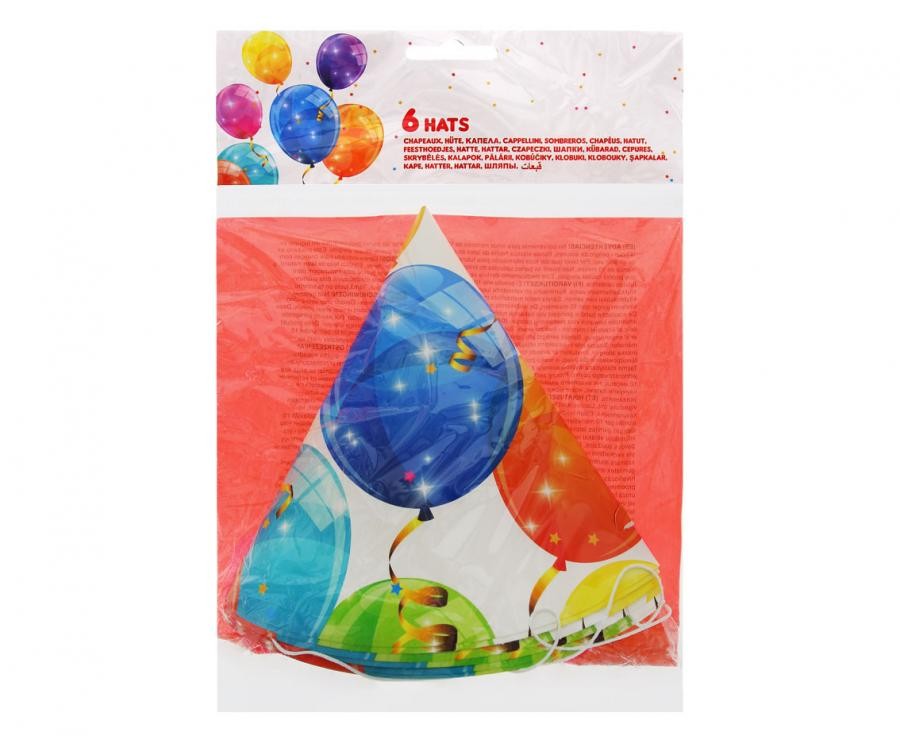 Парти шапки на шарени балони - зелено, червено, жълто, синьо, лилаво, оранжево.